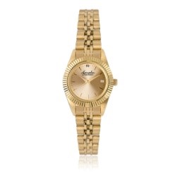 Available in blue and black dial with gold imprint or champagne dial with black imprint