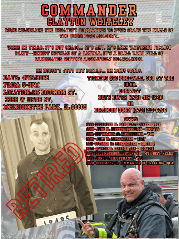 Retirement Party for Commander Clayton Whiteley – Saturday, April 25, 2026 (3B, EMS-4)